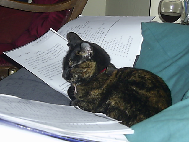 Since his return from the vet's, Ayesha has been afraid of Zhukov. We're doing everything the cat behaviourists tell you to, and she is getting more and more tolerant of his presence, but in this video you can hear her growling.